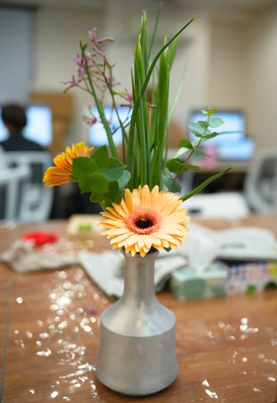 毎週月曜日、あいびー松本ではフラワーアレンジメントの時間でさまざまなお花を活けています。