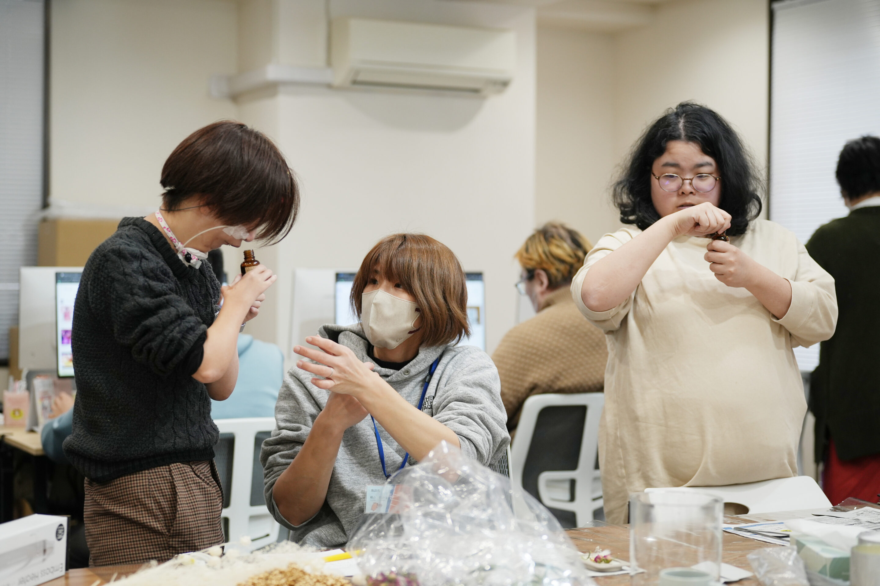 12月6日(土)の信毎メディアガーデン クリスマスマーケットに向けて、あいびー松本ではアロマサシェを制作しています🎄