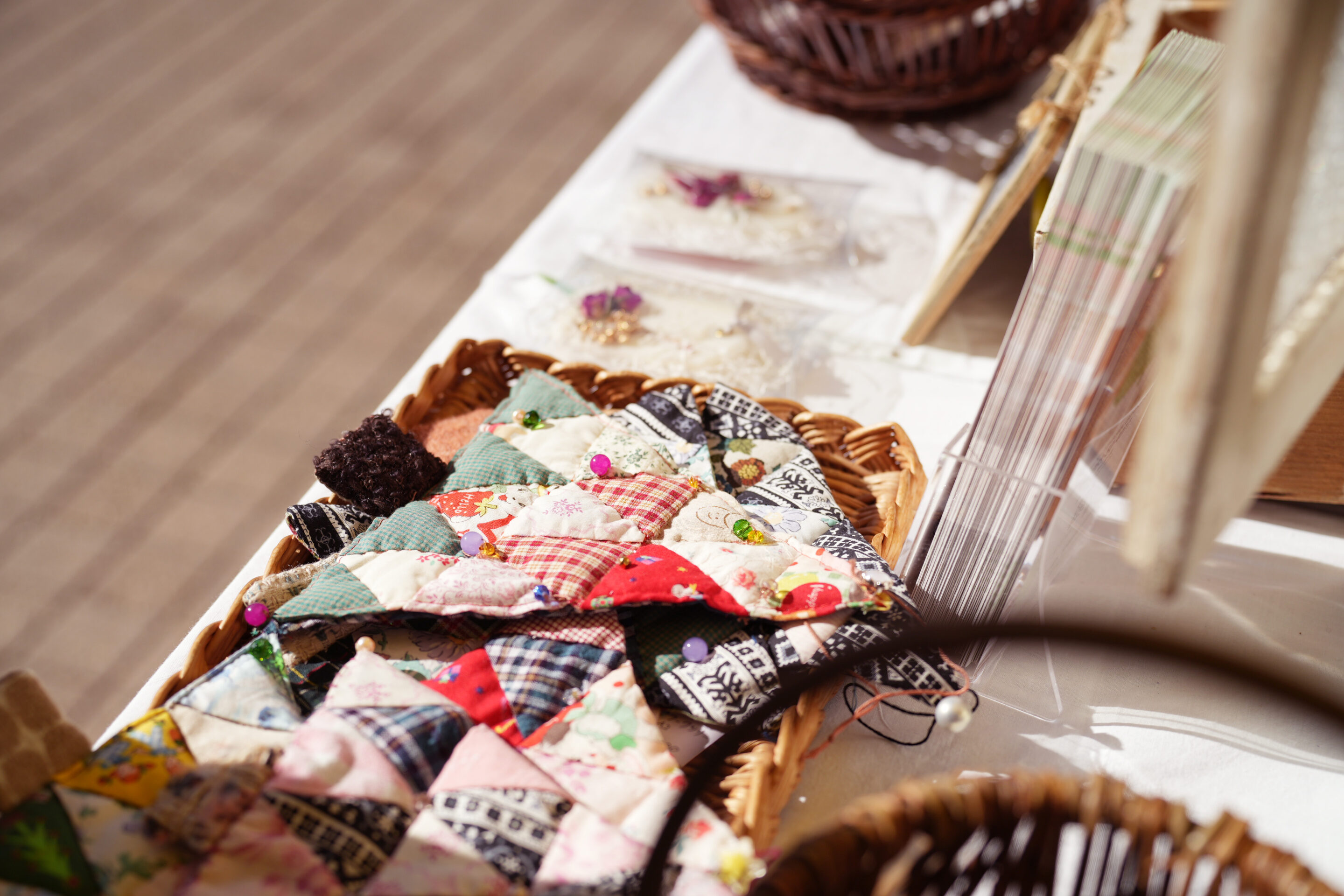 今回販売したのは、キャンドル、アロマサシェ、クリスマスリース、スワッグ、パッチワークツリーなど、みんなでコツコツ準備してきた手づくりの作品です🕯️✨