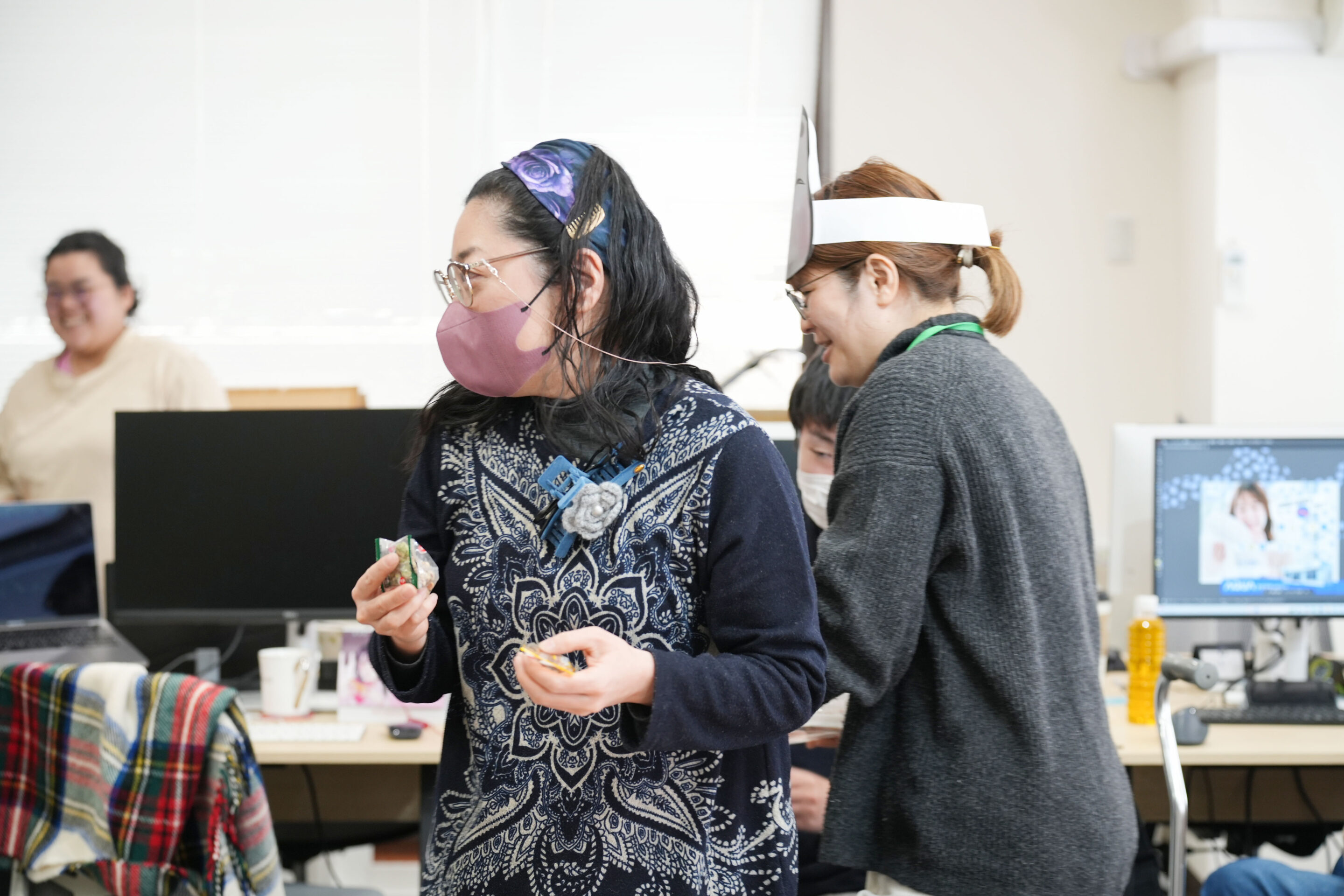 日々の作業に取り組む中で、こうした季節の行事をみんなで楽しむ時間は、気分転換になるだけでなく、自然と会話が生まれたり、お互いの新しい一面に気づけたりする大切な時間でもあります。豆を投げる一つひとつの動作にも、それぞれの個性が表れていて、とてもあたたかい空間が広がっていました☺️